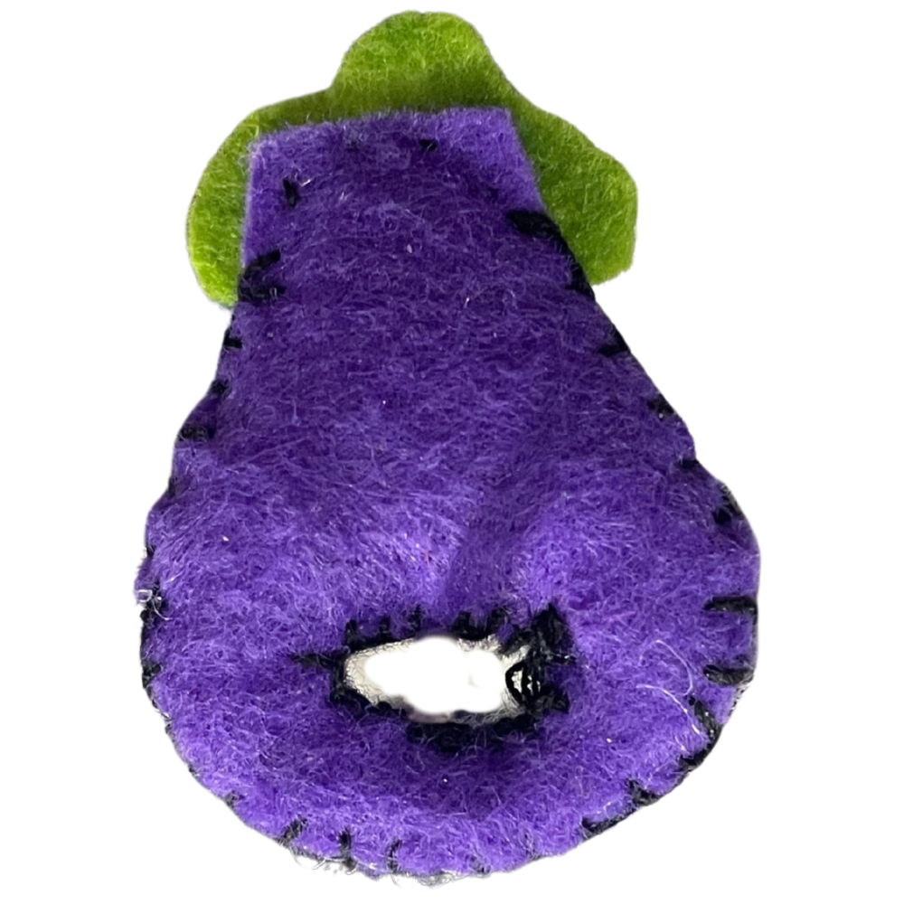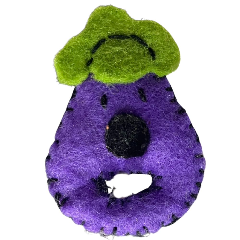Infuse your style with charming, farm-fresh fun! This adorable felt eggplant accessory is sure to bring a smile to your face every time you look at it.